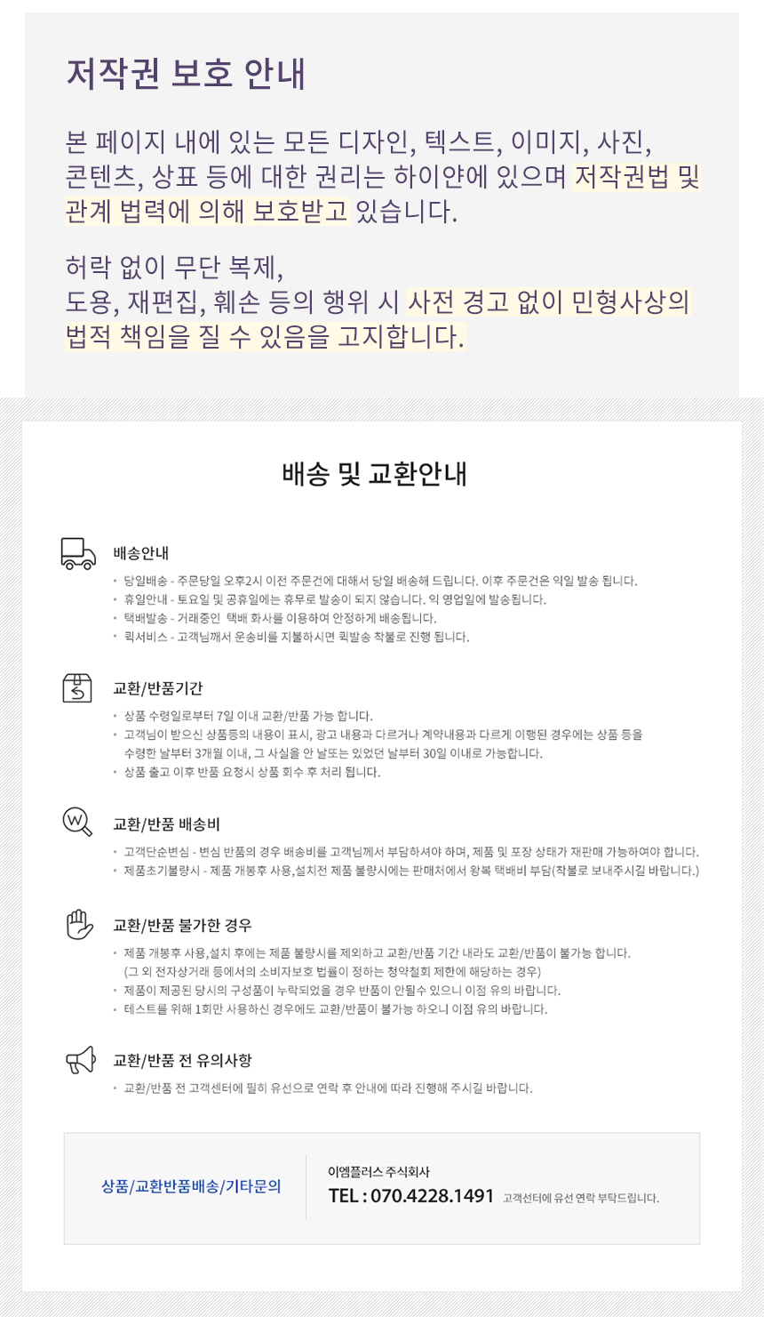 이엠플러스 주식회사 대표 : 이은만 I 주소 : 경기도 파주시 탄현면 방촌로 885-43 I 사업자등록번호 : 859-86-01690 I 대표번호 : 070-4228-1492 I 팩스번호 : 031-963-8376 I 이메일 : ahawhlee@naver.com
